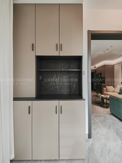 嵌入式餐邊柜開放格玻璃柜門相互搭配,質感滿滿。