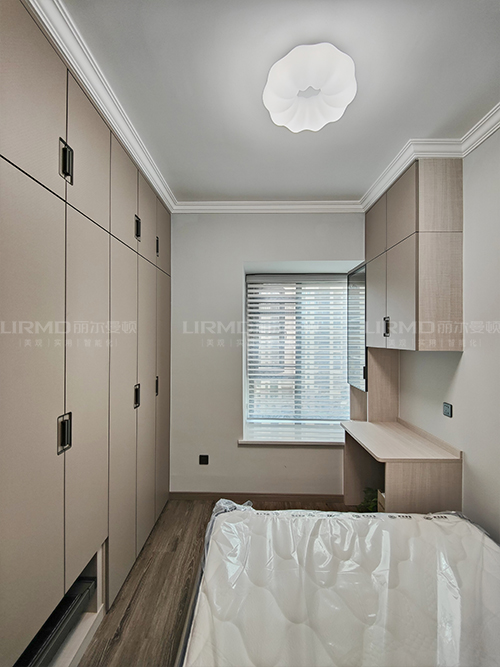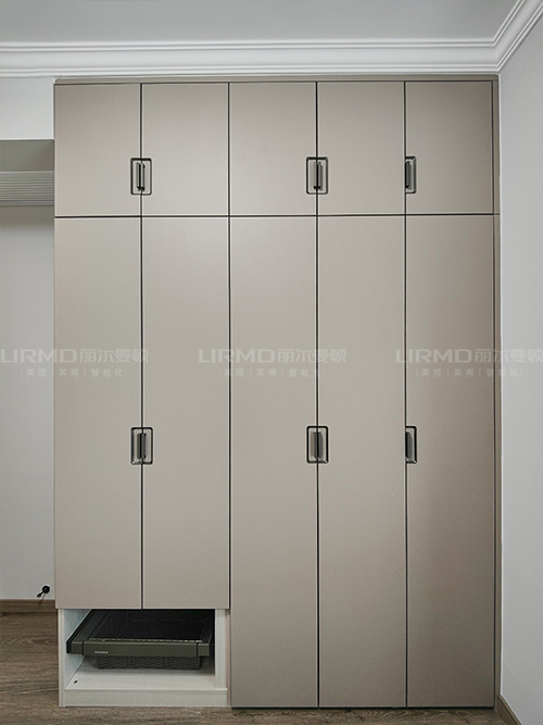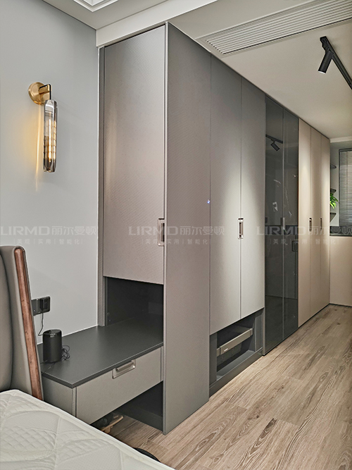 主臥柜門采用三色搭配,