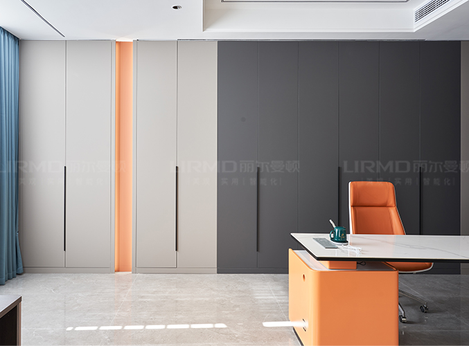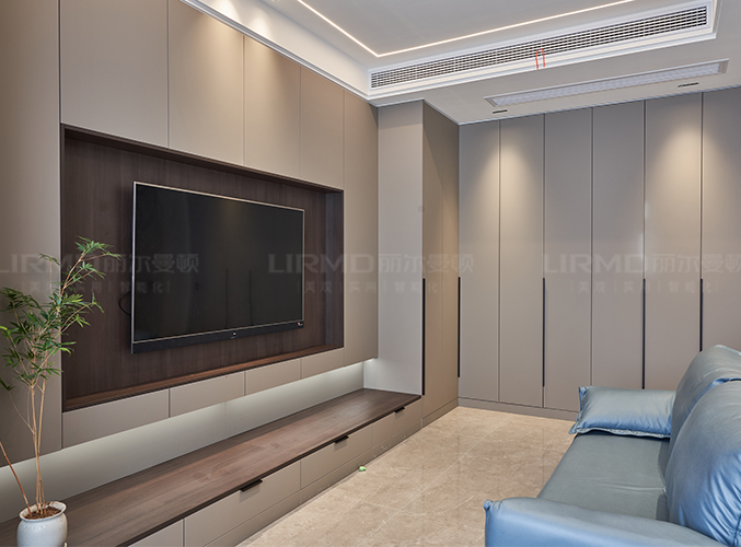整墻定制拼色柜子,錯落有致,線條硬朗,高級感滿滿。
