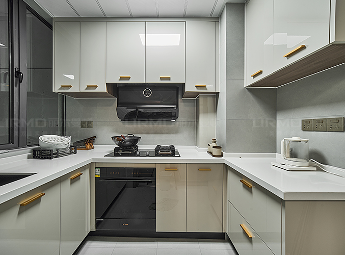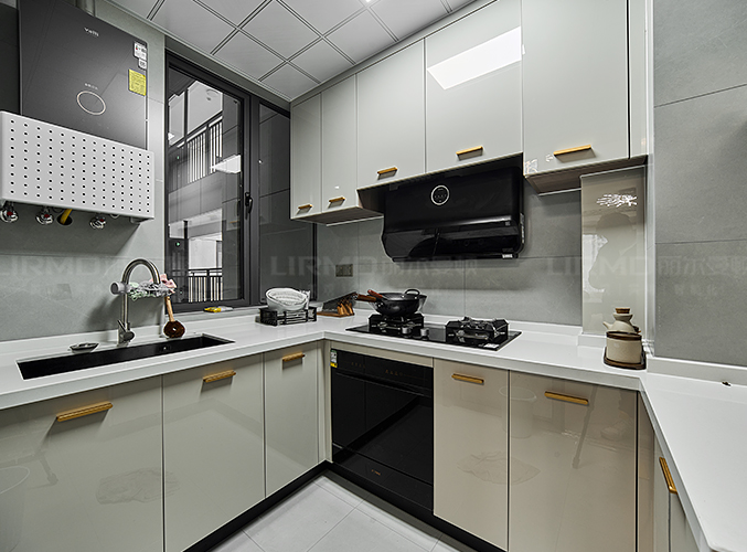 立面簡致,紋理細膩,上下方都有收納柜,視覺層次更加豐富。