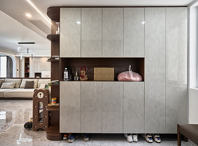 柜體底部挑空放置當(dāng)天所穿的鞋子,中間開(kāi)放格放置鑰匙或者包包等