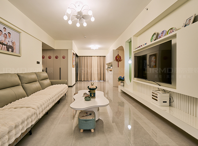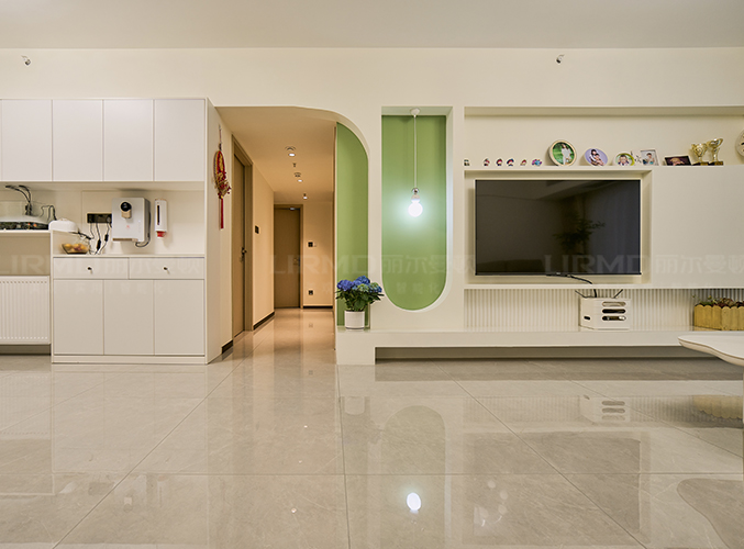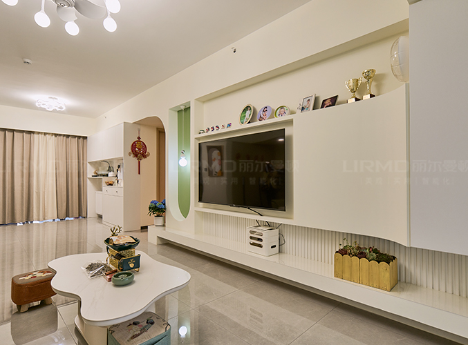 電視墻做石膏內嵌,開放空間擺設更隨心。
