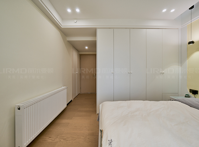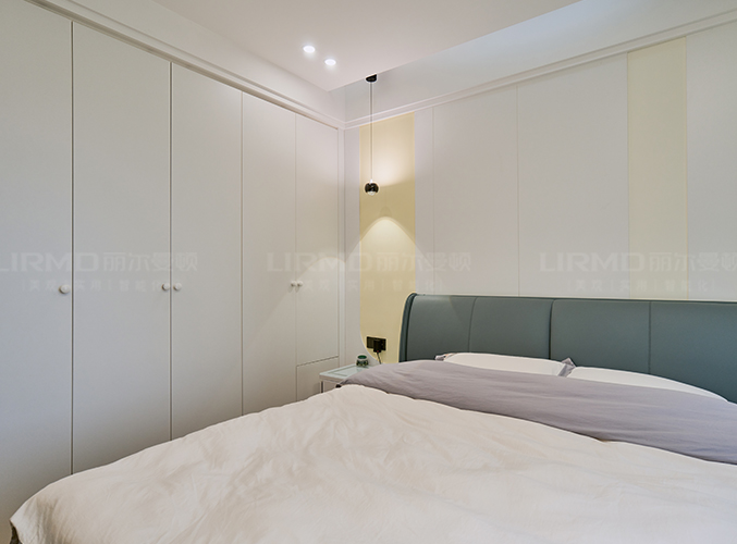 實木柜體搭配PET膚感柜門,一門到頂,無主燈設計營造空間增次,,整體顏色統一,美觀且大氣。