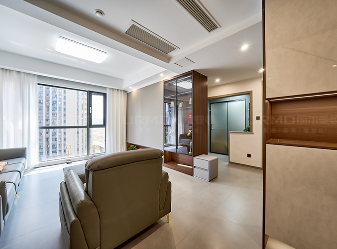 整屋通鋪瓷磚,盡顯大氣,電視背景墻采用整面墻設計,整體效果不顯沉悶,
