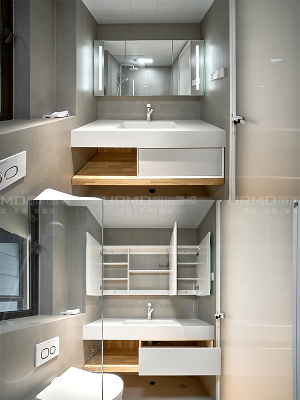 柜體\柜門型號:柜體夢幻灰\柜門琥珀白膚感