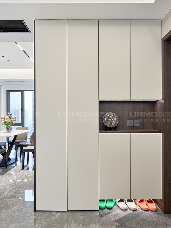 柜體\柜門型號(hào):柜體夢(mèng)幻灰\柜門琥珀白膚感 地磚品牌及型號(hào):馬可波羅CH12800啞光