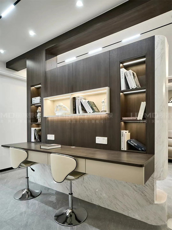 增加玻璃和燈帶的設(shè)計(jì),讓書柜顏值氛圍感拉滿