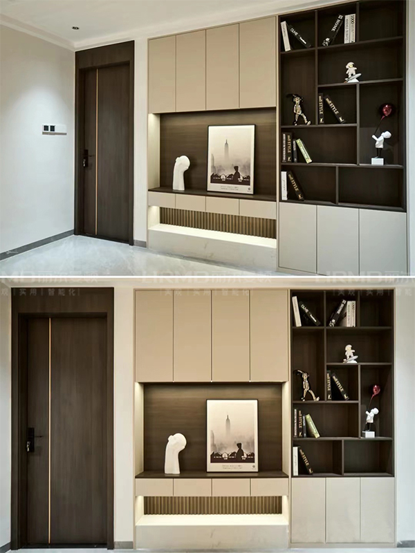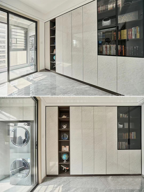 柜門門板采用免拉手設(shè)計(jì),更顯高級(jí)簡(jiǎn)潔