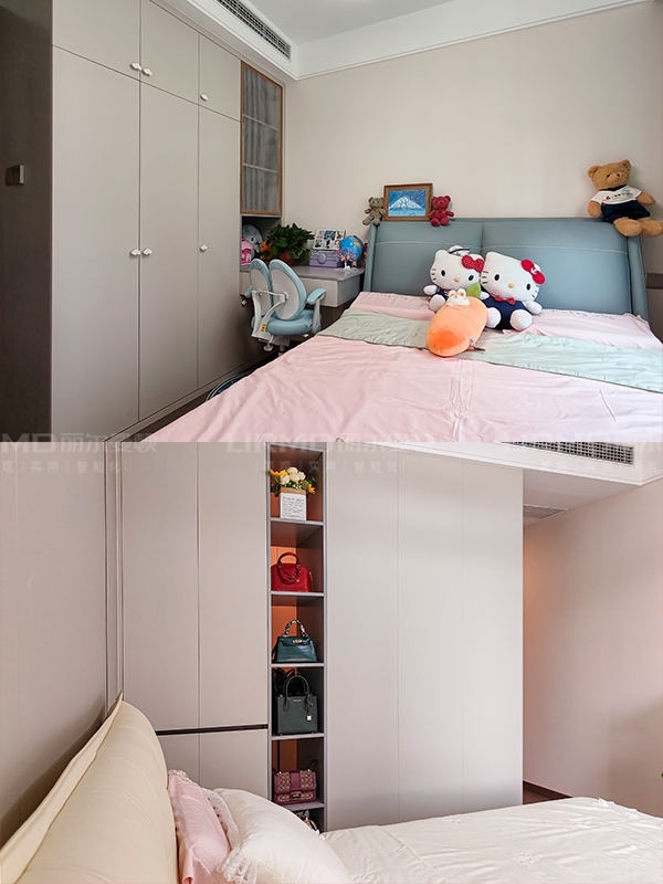 全房柜體打造較多,利用部分穿插設(shè)計(jì)、跳色設(shè)計(jì),