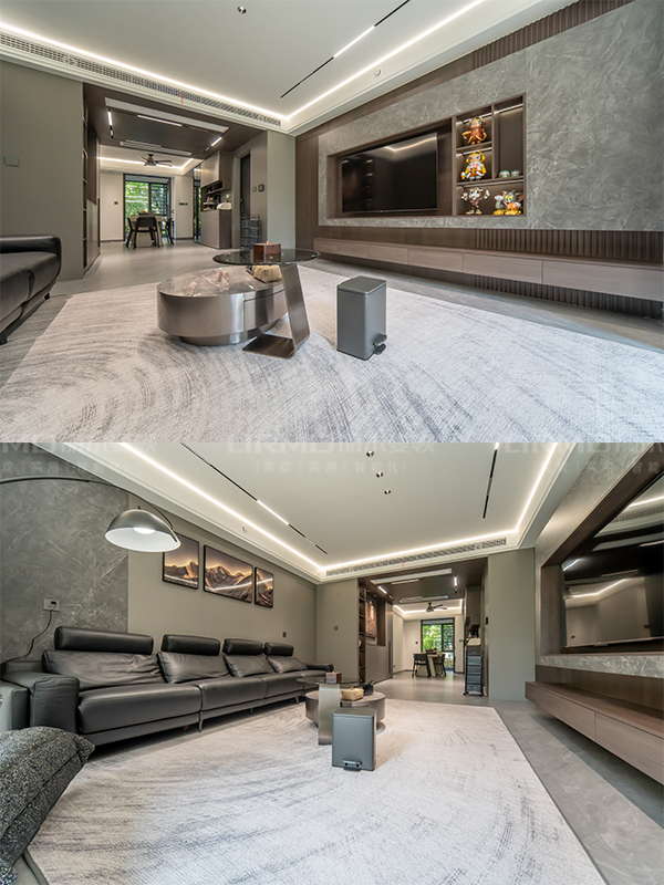 客廳采用了隱形門設(shè)計,延長電視背景+沙發(fā)背景視覺,是整體空間看起來更大