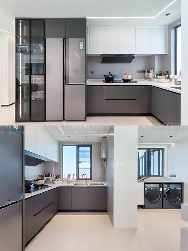 客餐廳、陽臺、廚房、書房四合一設計,高效利用收納空間。