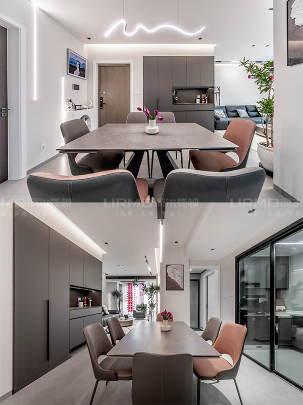 全屋高端定制:柜體板材18厚杉木實(shí)芯板,柜門有pet膚感、高光、超晶、五金使用原裝進(jìn)口奧地利百隆五金