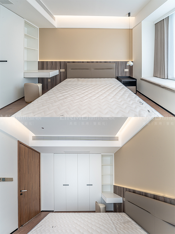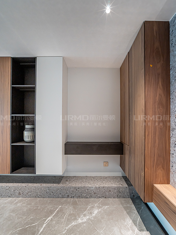 從柜到墻再到門的連貫延伸,全景化的視角效果,完美呈現出簡潔大氣的空間感