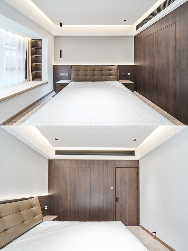 臥室柜做半墻木飾面,整體更有層次感