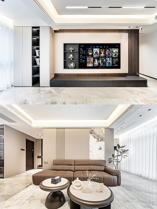 無主燈設計打破了傳統單一光源的局限,營造出豐富而有層次的光影效果,讓整個空間瞬間高級起來,充滿藝術感