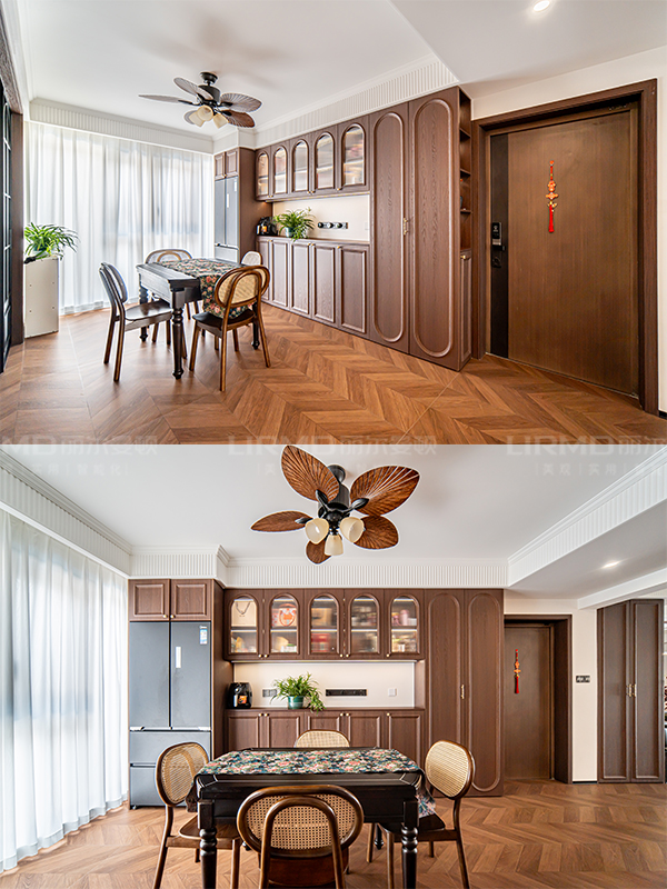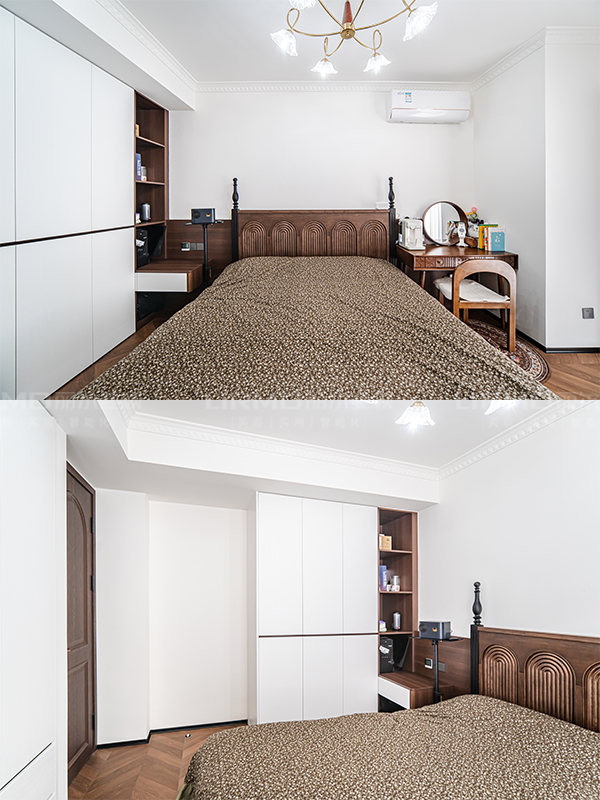長沙靠譜裝修公司,長沙靠譜全屋定制,臥室衣柜加梳妝臺,輕法中古風,