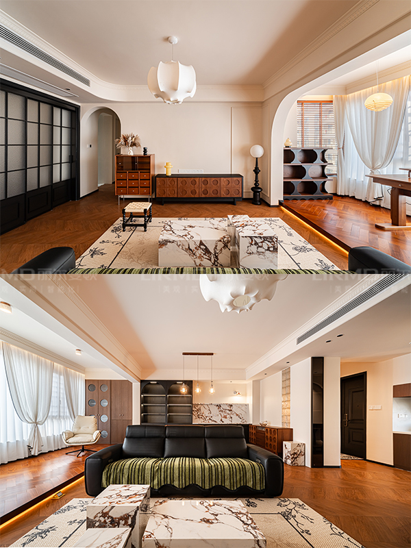 傾向于開放式格局,拆除非承重墻形成通透的視覺動線。通過拱門、回廊等元素連接不同區域,讓空間過渡自然。
